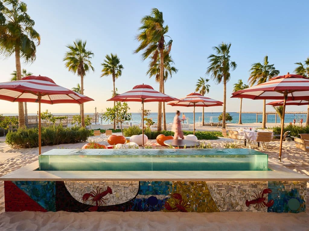 يُعتبر Bungalo34 بدون شك واحدًا من أفضل الأماكن التي توفر إطلالات رائعة على البحر في دبي، حيث يقع على الشاطئ في منتجع وسبا بيتش دبي في لؤلؤة جميرا. بعيدًا عن صخب إيقاعات نوادي الشاطئ، يُقدم Bungalo34 جوًا هادئًا ومميزًا. يُعتبر واحدًا من أفضل المطاعم الخارجية في دبي، حيث يتيح للزوار الاستمتاع بتناول الطعام على التراس المشمس وعلى الرمال، مع أثاث أنيق ومظلات بالألوان الأحمر والأبيض التي تمنح الجو شعورًا بالريفيرا الفرنسية. يأتي الطعام من مجموعة تاشا مع تشكيلة متنوعة تتضمن الكاباتشيوس والمعكرونة والبيتزا والسلطات والمزيد، مما يجعل تناول الطعام على شاطئ البحر تجربة فريدة وممتعة للزوار.