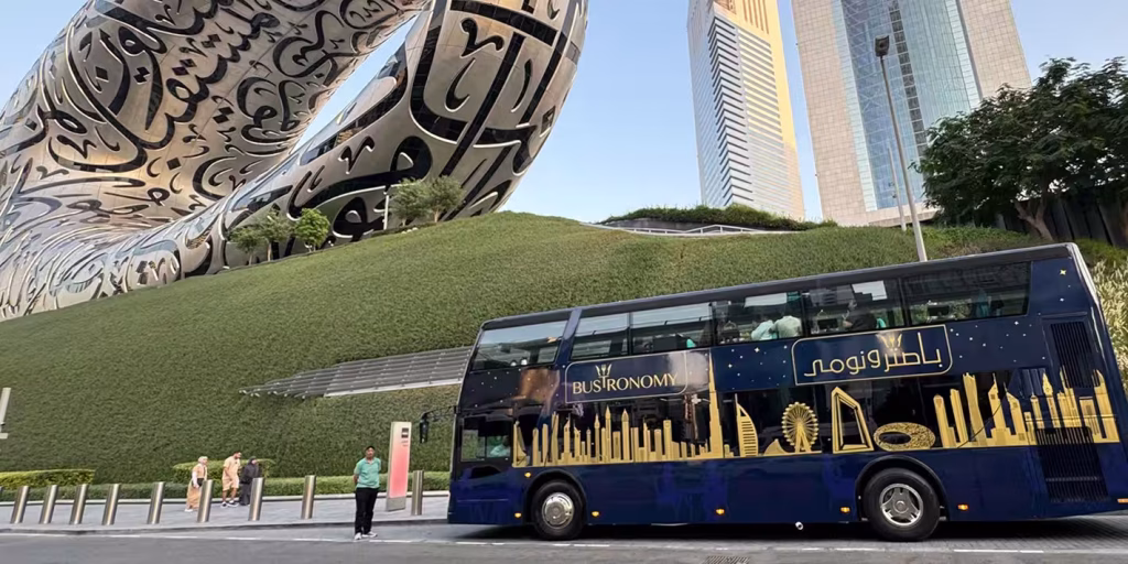 تجربة طعام فريدة على متن باص ذو سقف زجاجي يتجول حول أبرز معالم دبي، مع قوائم طعام فاخرة وقصص صوتية متعددة اللغات تربطك بتاريخ المدينة.