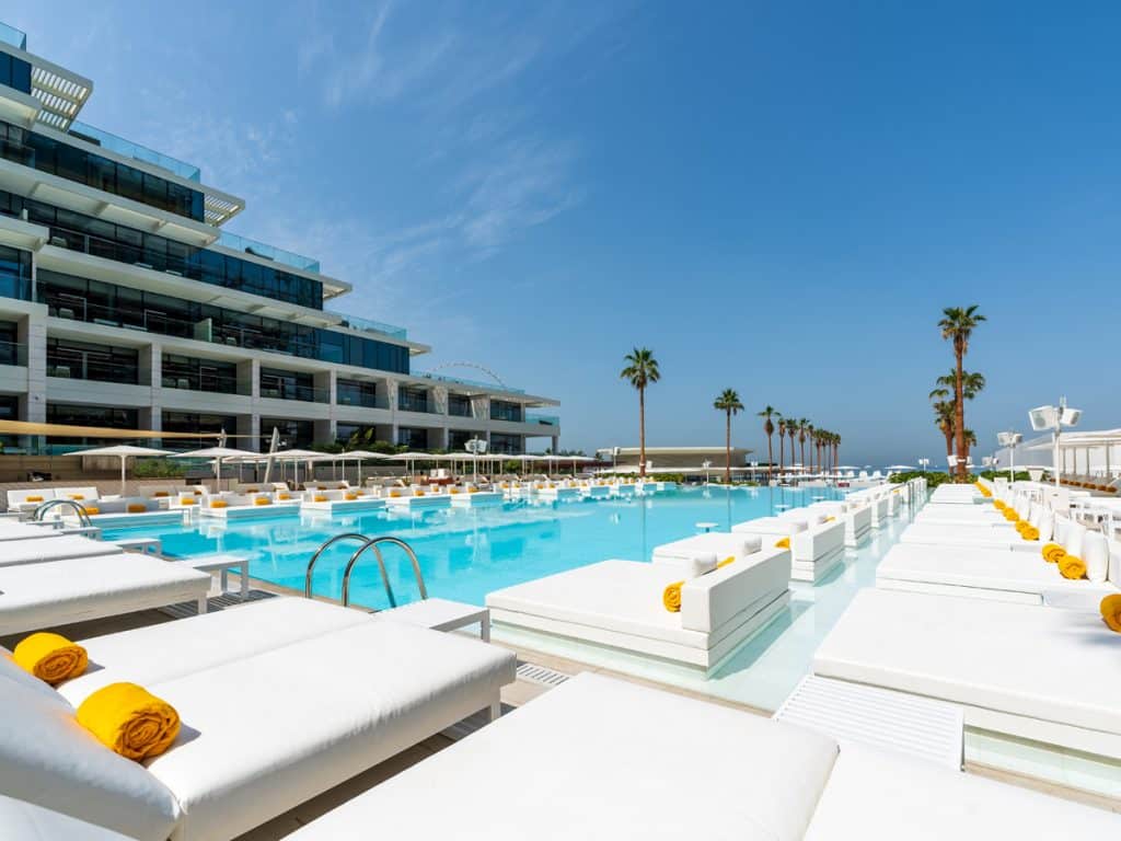 يقع على Palm Jumeirah مع شاطئ خاص بطول 150 متر وإطلالات على دبي مارينا وعين دبي، يضم حمامات ساخنة وغرف مسبح فاخرة مع حفلات موسيقية دولية.