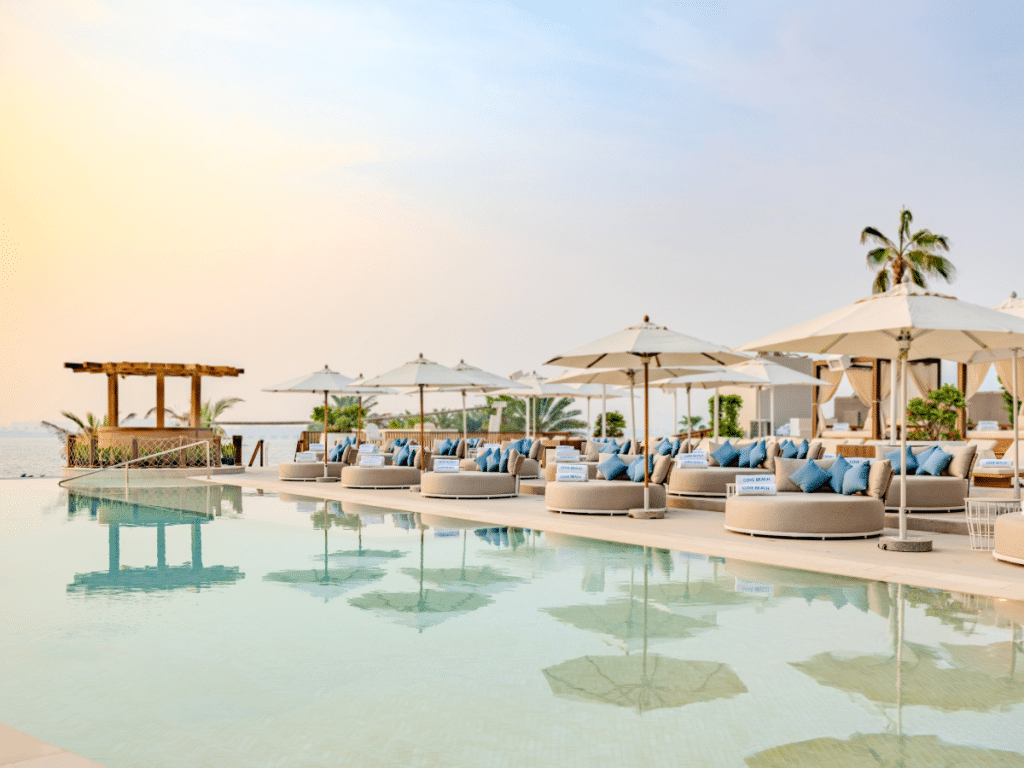نوادي على Palm Jumeirah بطابع إيبزي البوهيمي، مع مسبح وشاطئ رملي مستورد، أجواء هادئة ومثالية للصور على إنستغرام، مع قائمة من الأطعمة الخفيفة.