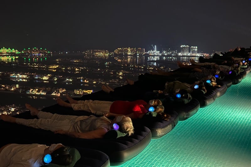 استمتع بتجارب رفاهية فريدة على ارتفاع 210 أمتار في مسبح السماء بالطابق الـ50، تشمل الجلسات الأسبوعية يوجا الصوت، يوغا الماء، وتمارين التنفس العميق، إلى جانب فعاليات خاصة مثل تحدي دبي الرياضي وتحدي SKYROX للياقة.