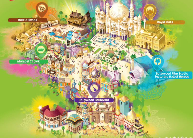 تعكس هذه المنطقة الريف الهندي التقليدي، حيث يمكن للزوار الاستمتاع بالألعاب المستوحاة من أفلام كلاسيكية مثل “لاغان” و”شولاي”. أبرز ما يميز المنطقة هو “بوليوود سكاي فلاير”، أطول أرجوحة دوارة في العالم.