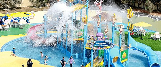 - سبلاش باد المائي: مخصصة للأطفال من عمر سنة إلى 12 سنة، تحتوي على منزلقات، نوافير، جدران تسلق وألعاب ترامبولين، لتجربة آمنة وممتعة للصغار.
