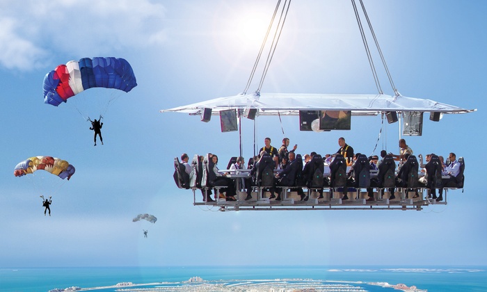 هل فكرت يوما في تناول الطعام على طاولة معلقة بواسطة رافعة بارتفاع 50 متر في السماء؟ حتى لو لم تقم بذلك ، فلا يزال بإمكانك تجربة هذا الخيار في دبي، حيث تشمل القائمة مجموعة مختارة من الأطباق الراقية وإطلالات على المدينة بأكملها، وستكون مربوطا بأمان على كرسي ويمكنك مشاهدة كل طبق يتم إعداده من قبل الطهاة في السماء، وتستغرق التجربة بأكملها حوالي 90 دقيقة، وبالتأكيد ستكون تجربة لا تنسى.